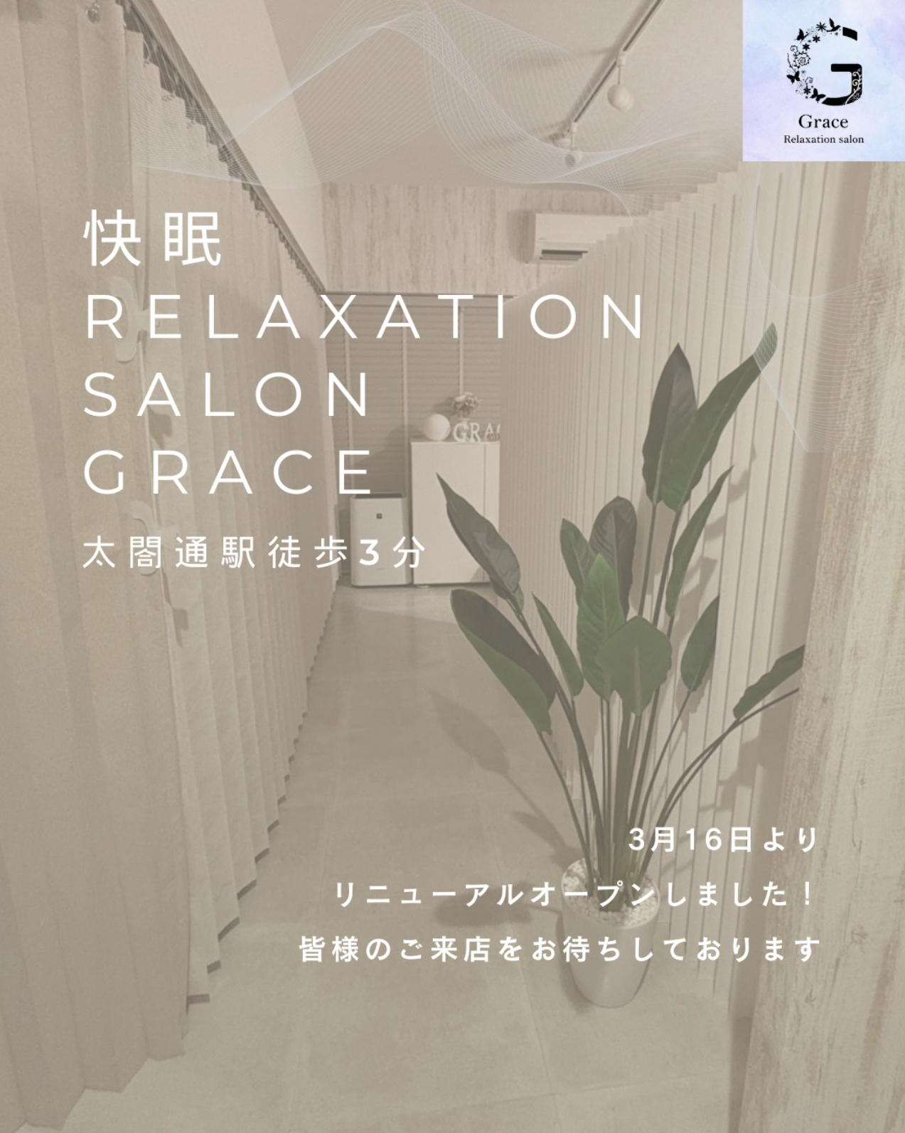 「新しくなったGraceってどんな感じ?」と気になってくださっている今までのお客様、そして初めてお越しいただける皆様、今だけのお得な価格でぜひ一度お越しいただけますと幸いです。